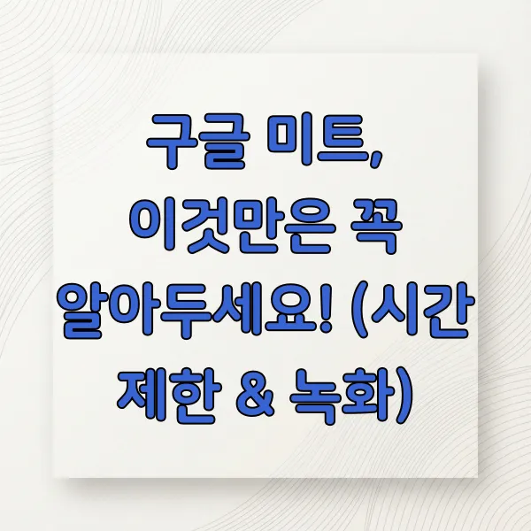 구글 미트를 무료로 사용할 때 가장 신경 쓰이는 부분이 바로 '시간 제한'일 거예요. 그리고 또 하나, 중요한 회의 내용을 '녹화'하고 싶을 때가 있잖아요? 이 두 가지에 대해 명확하게 알려드릴게요.