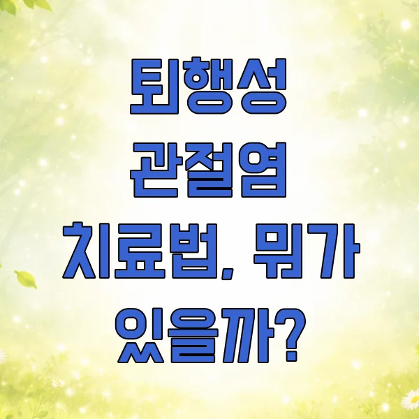 퇴행성 관절염으로 힘드시다면, 다양한 치료법을 통해 삶의 질을 높일 수 있습니다. 수술적 치료부터 생활 습관 개선까지, 자신에게 맞는 방법을 찾아 건강한 관절을 되찾아 보세요!